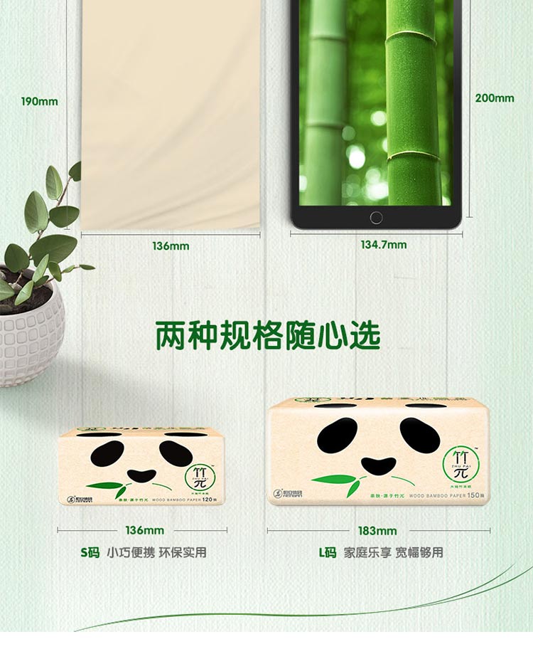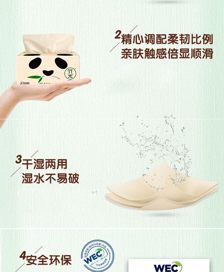 原生竹浆 湿水柔厚 整箱15包
