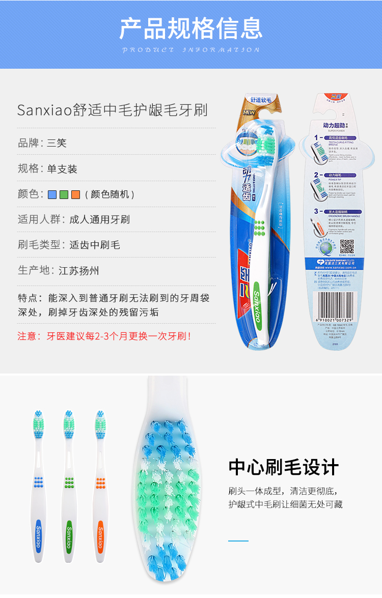 商品名称:三笑 12支2103中毛大头成人牙刷