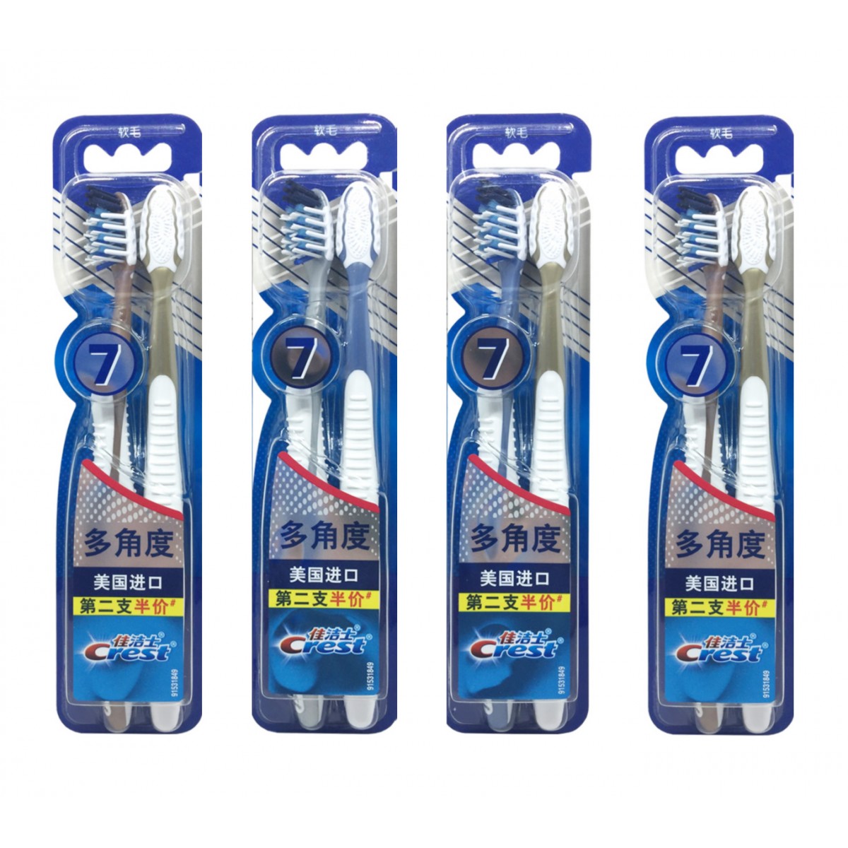 商品名称:佳洁士 全优七效牙刷8支 美国进口小头软毛crest按摩舌苔牙刷
