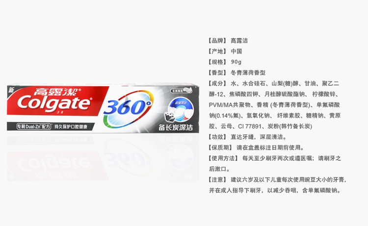 商品名称:高露洁 360备长炭深洁 口气清新 健龈牙膏90g*4支 冬青薄荷香型