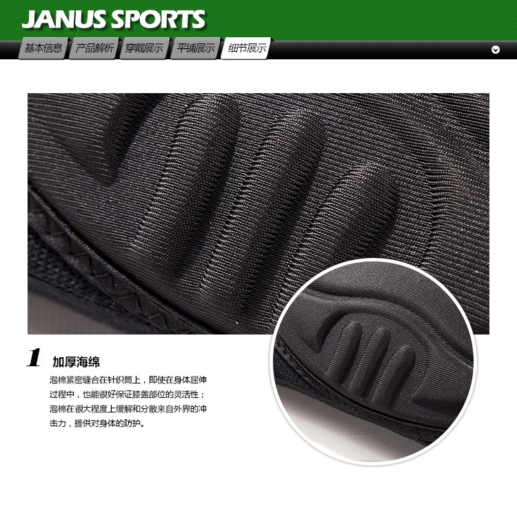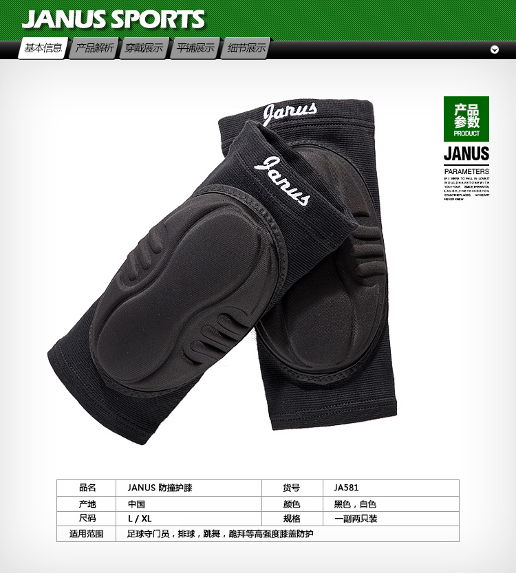 商品名称:JANUS 加厚防撞 专业排球守门员舞蹈街舞攀岩 海绵护膝盖 JA581