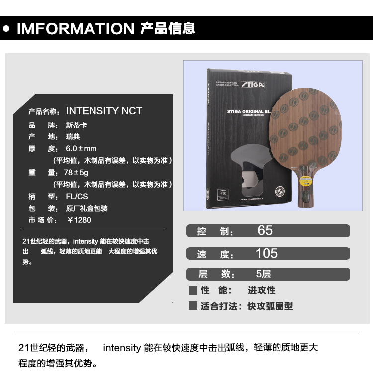 商品名称:STIGA/斯蒂卡 INTENSITY NCT 纳米技术 全木