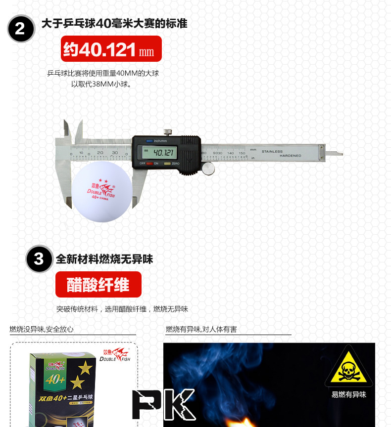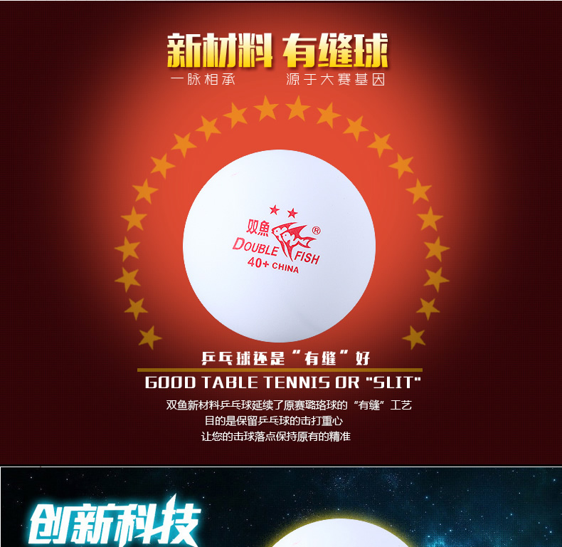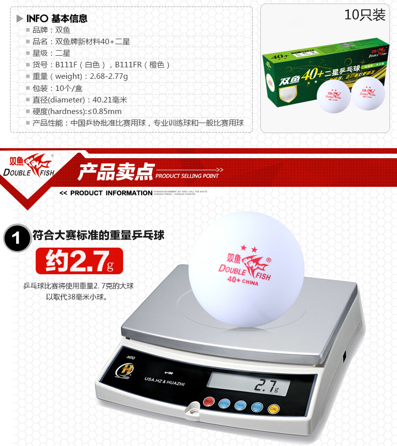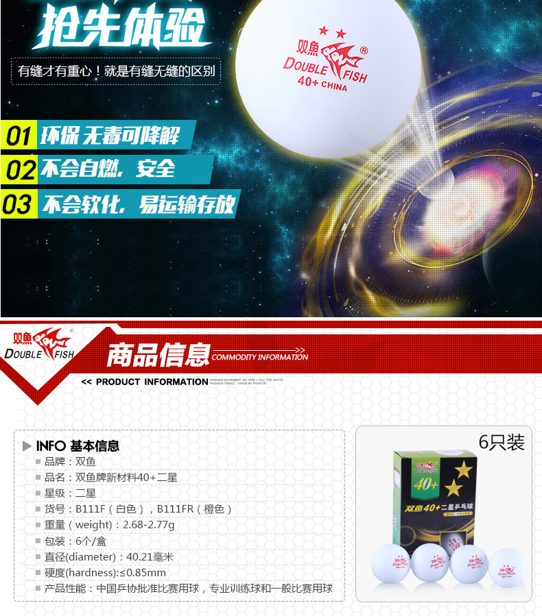 商品名称:双鱼 乒乓球 新材料二星乒乓球40+ pp球 训练比赛兵乓球 6个装