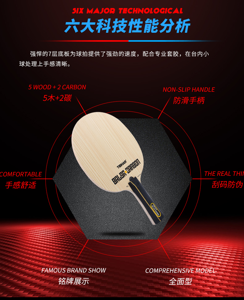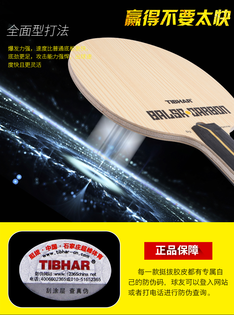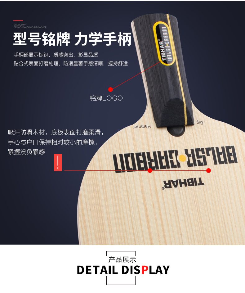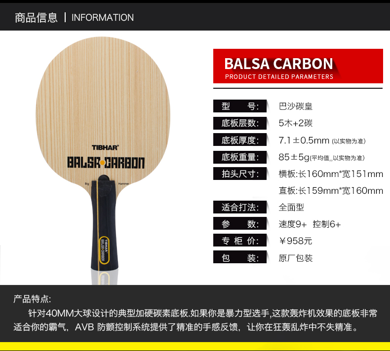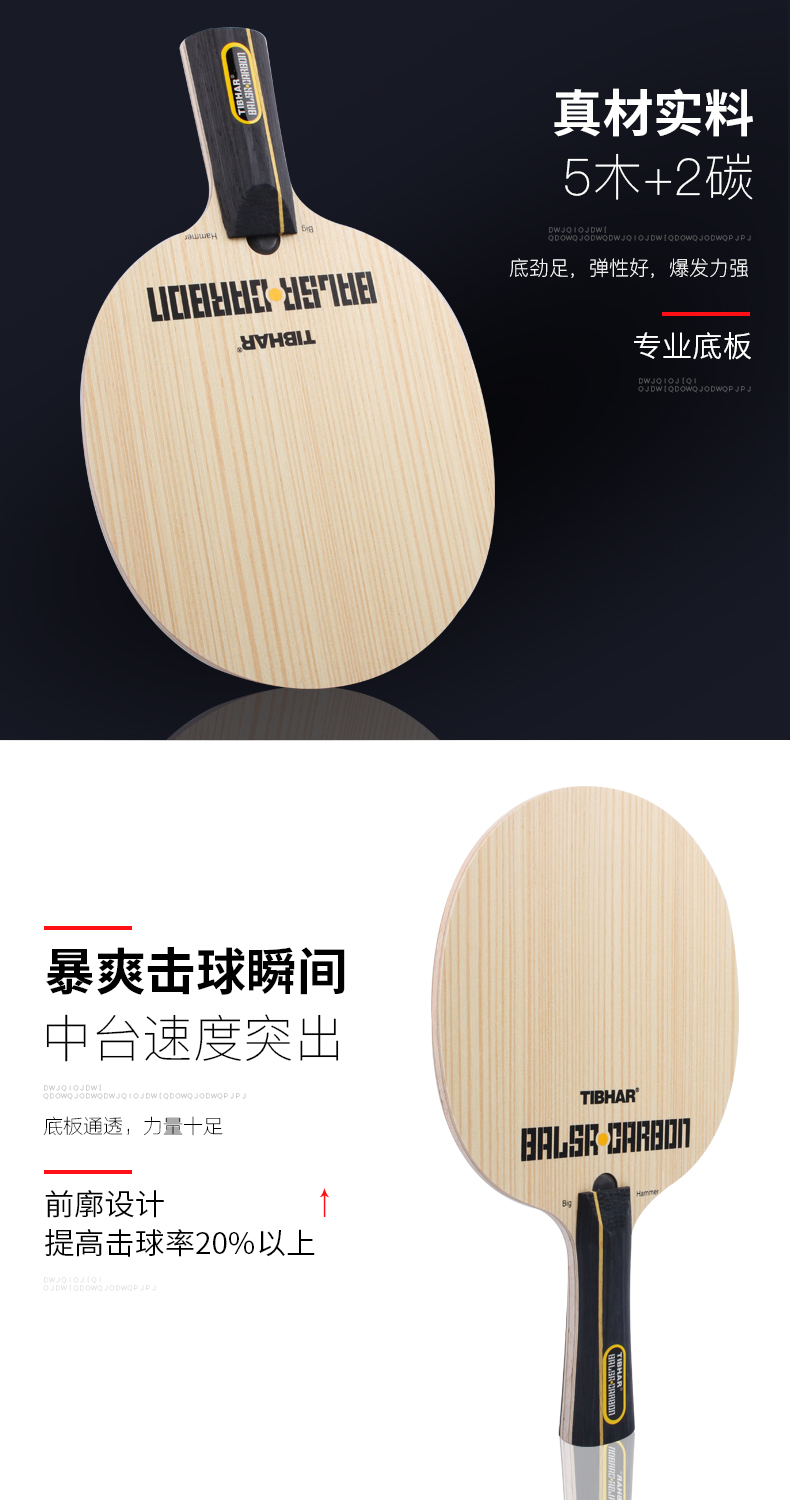 商品名称:TIBHAR/挺拔 乒乓球拍底板 BALSA CARBON 巴沙碳皇乒乓球拍底板攻击