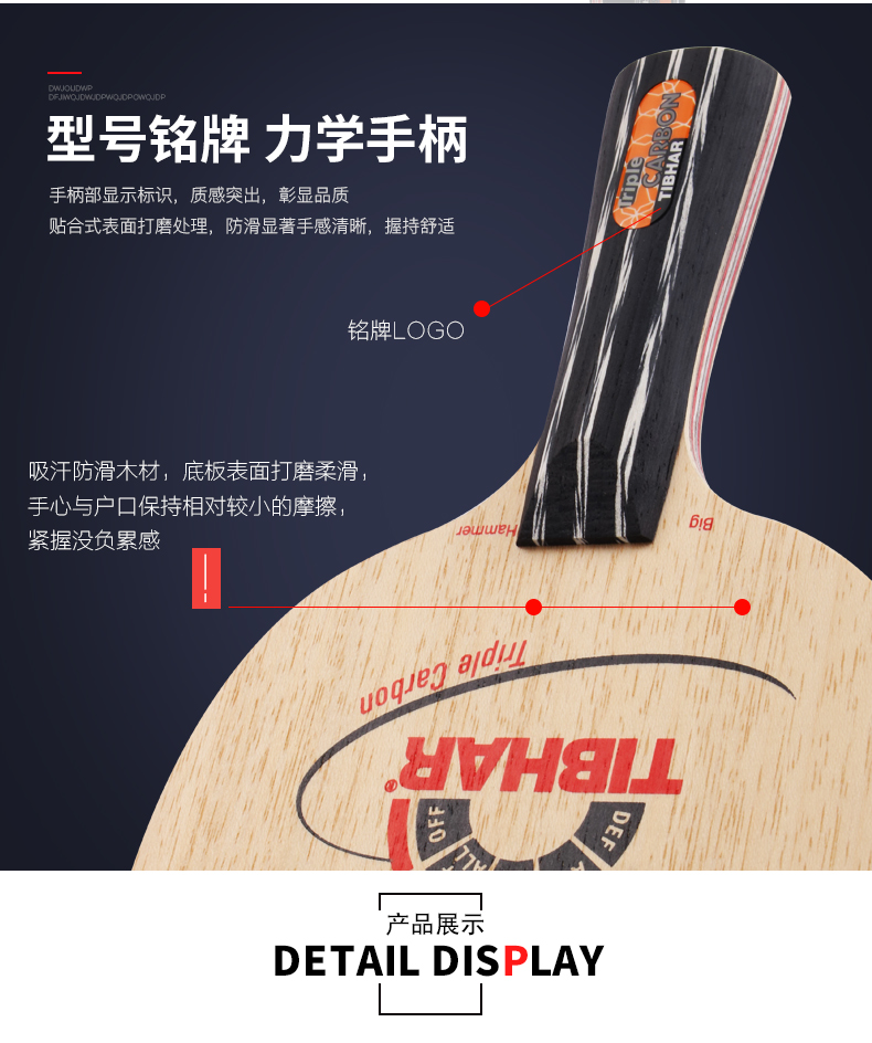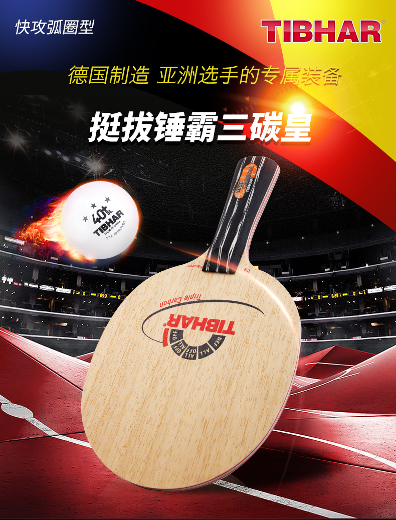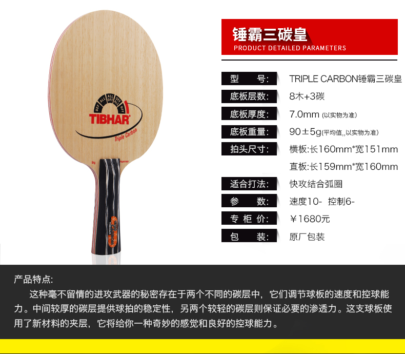 商品名称:TIBHAR/挺拔Triple Carbon锤霸三碳皇大锤乒乓球拍底板
