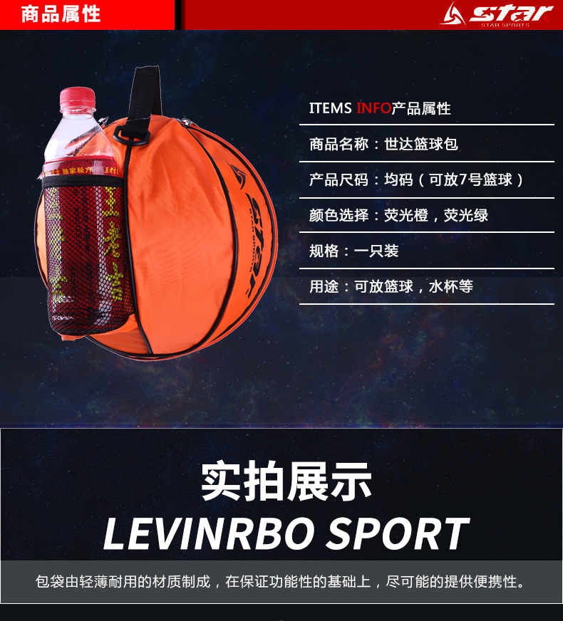 商品名称:Star/世达 篮球包 训练包 单颗篮球包 袋 单肩 防水篮球袋 运动包可装水