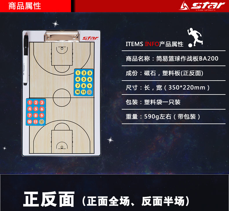 商品名称:Star/世达 篮球战术板BA200 篮球讲解盘 教练教学板