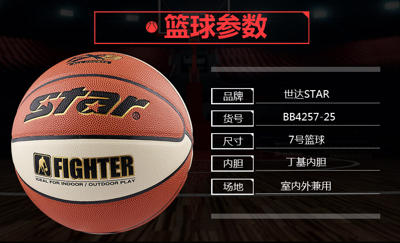 商品名称:Star/世达 篮球 防滑耐磨水泥地篮球室内外七号标准篮球
