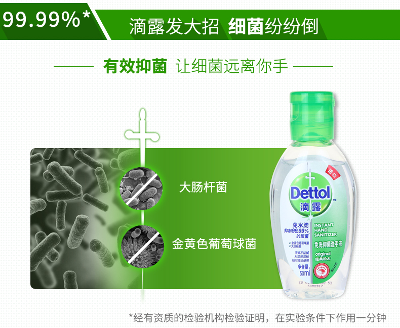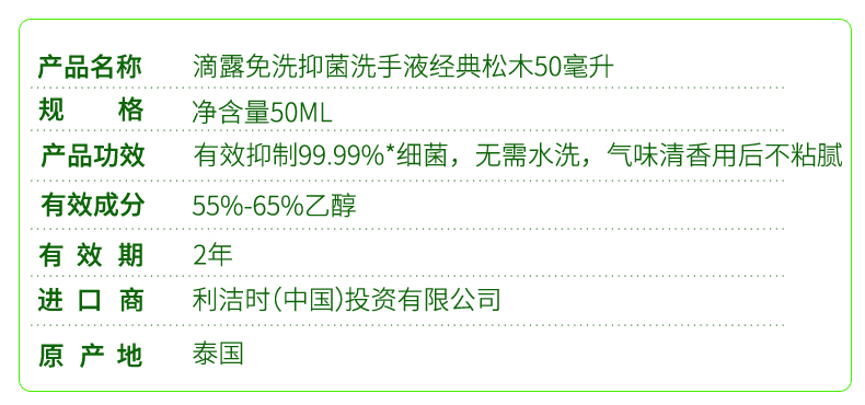 商品名称:滴露 免洗洗手液 经典松木50ml 便携装 抑菌 方便