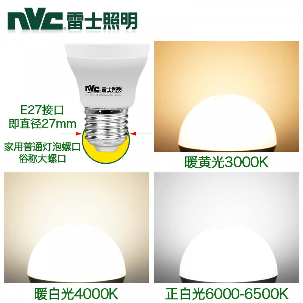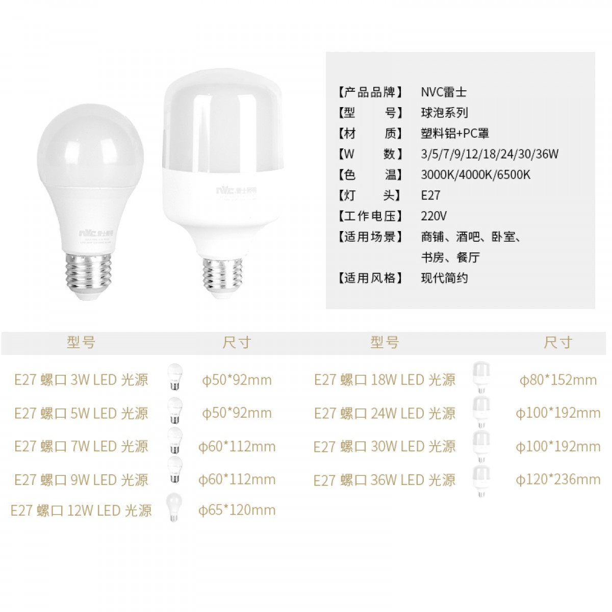 商品名称:雷士照明 led灯泡e27暖白黄光3w5瓦12W24W30w36W家用螺口球泡光源