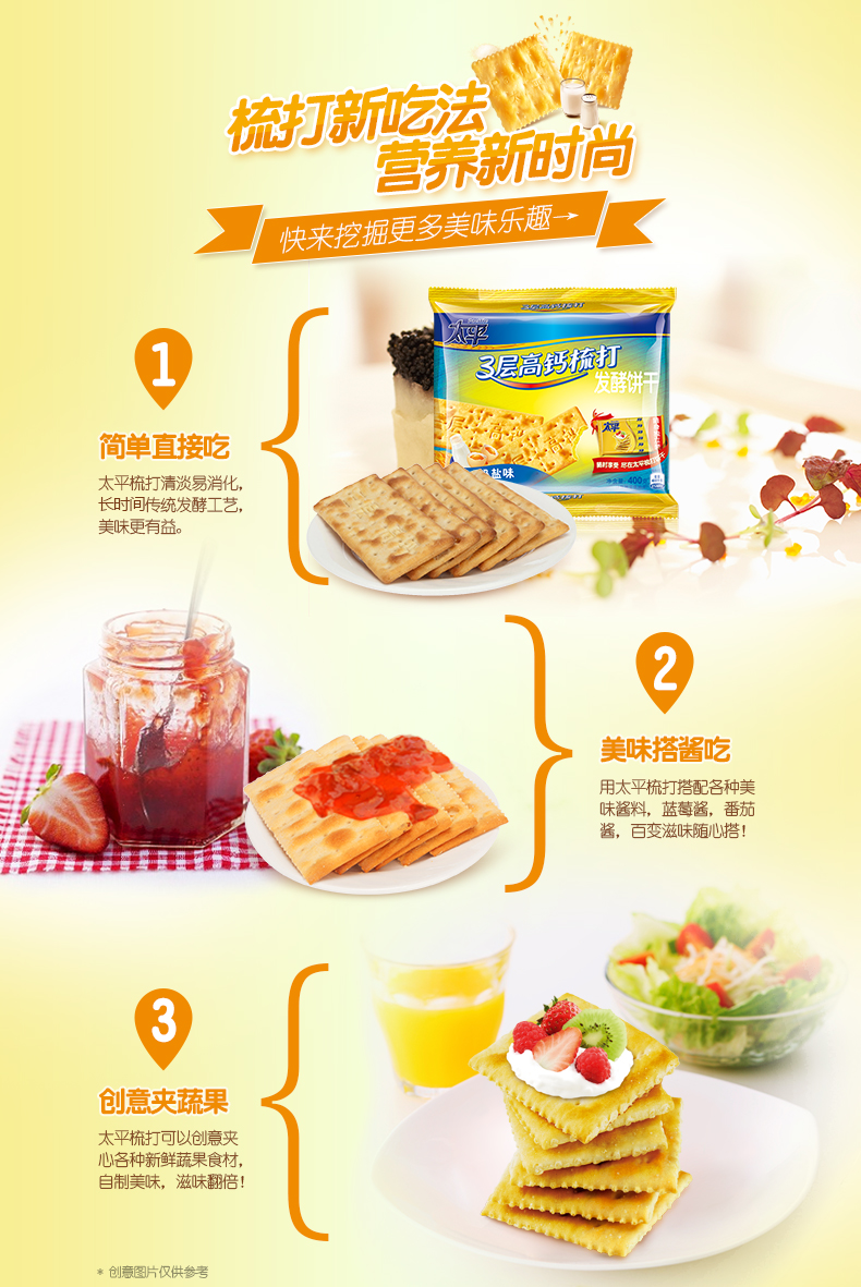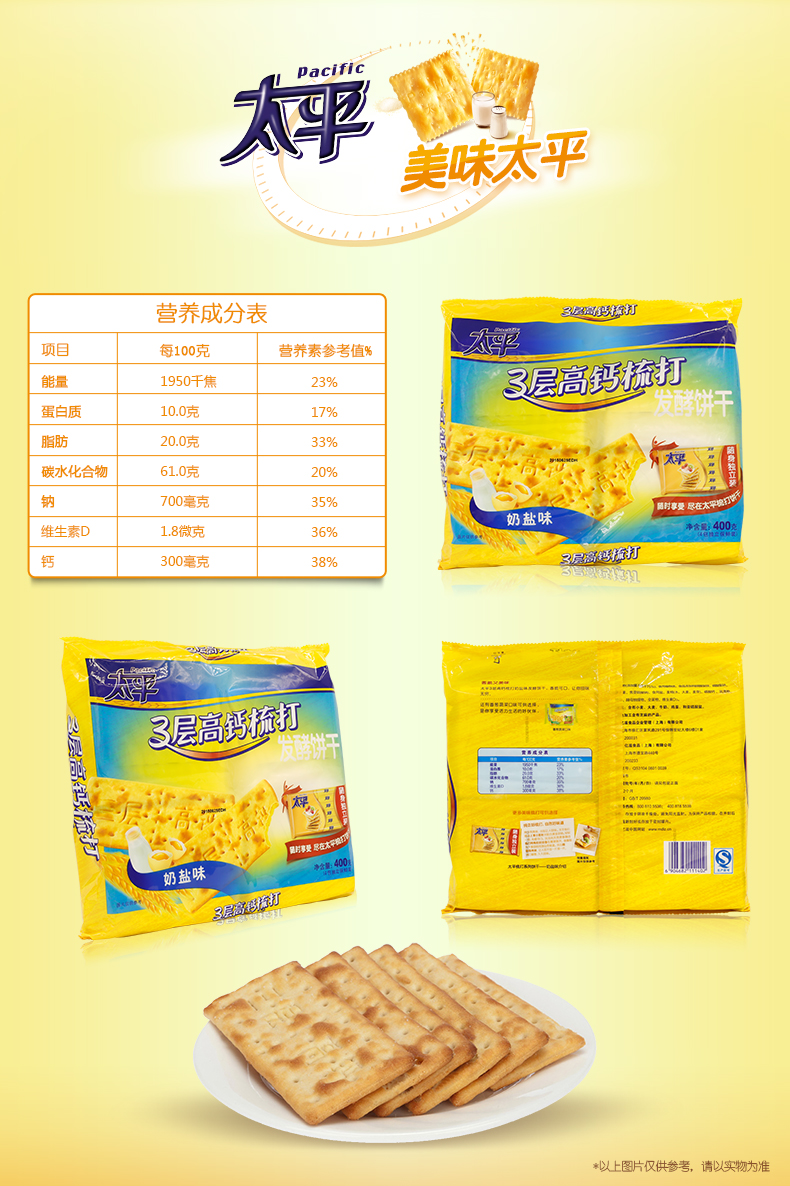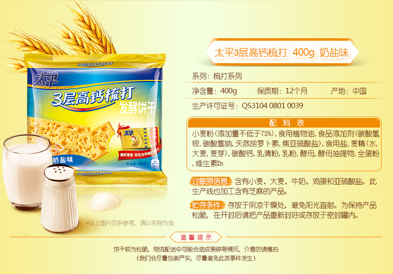 商品名称:太平 梳打三层高钙奶盐味饼干400g 含高维钙休闲食品