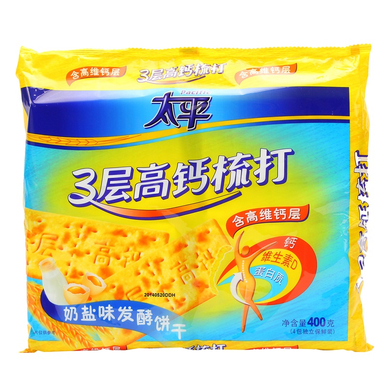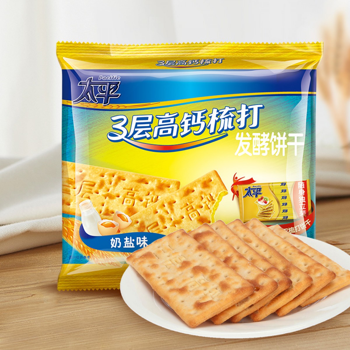 太平 梳打三层高钙奶盐味饼干400g 含高维钙休闲食品