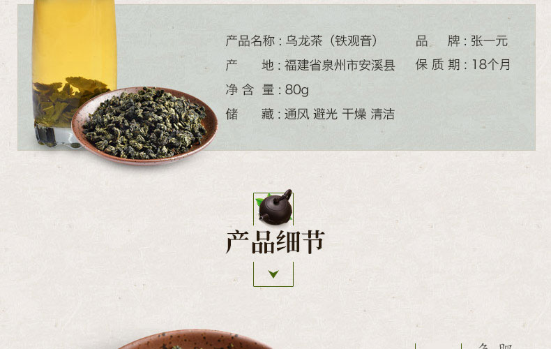 商品名称:张一元 铁观音 乌龙茶茶叶 清香 罐装耐泡80g 尚品系列