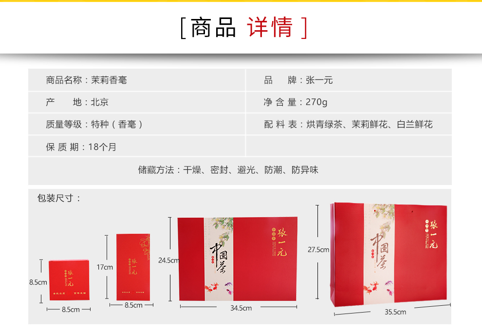 商品名称:张一元 花茶茶叶 茉莉香毫 年年有余礼盒装茶礼270g