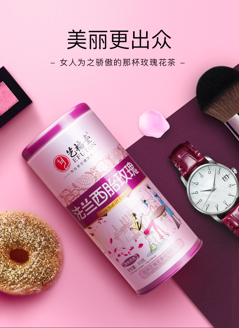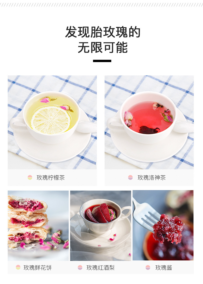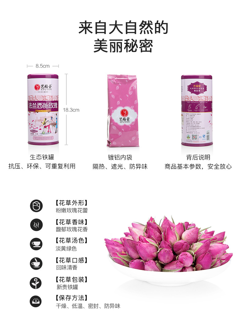 商品名称:艺福堂 进口玫瑰花茶干玫瑰花草茶叶特级天然法兰西胎玫瑰花茶罐装