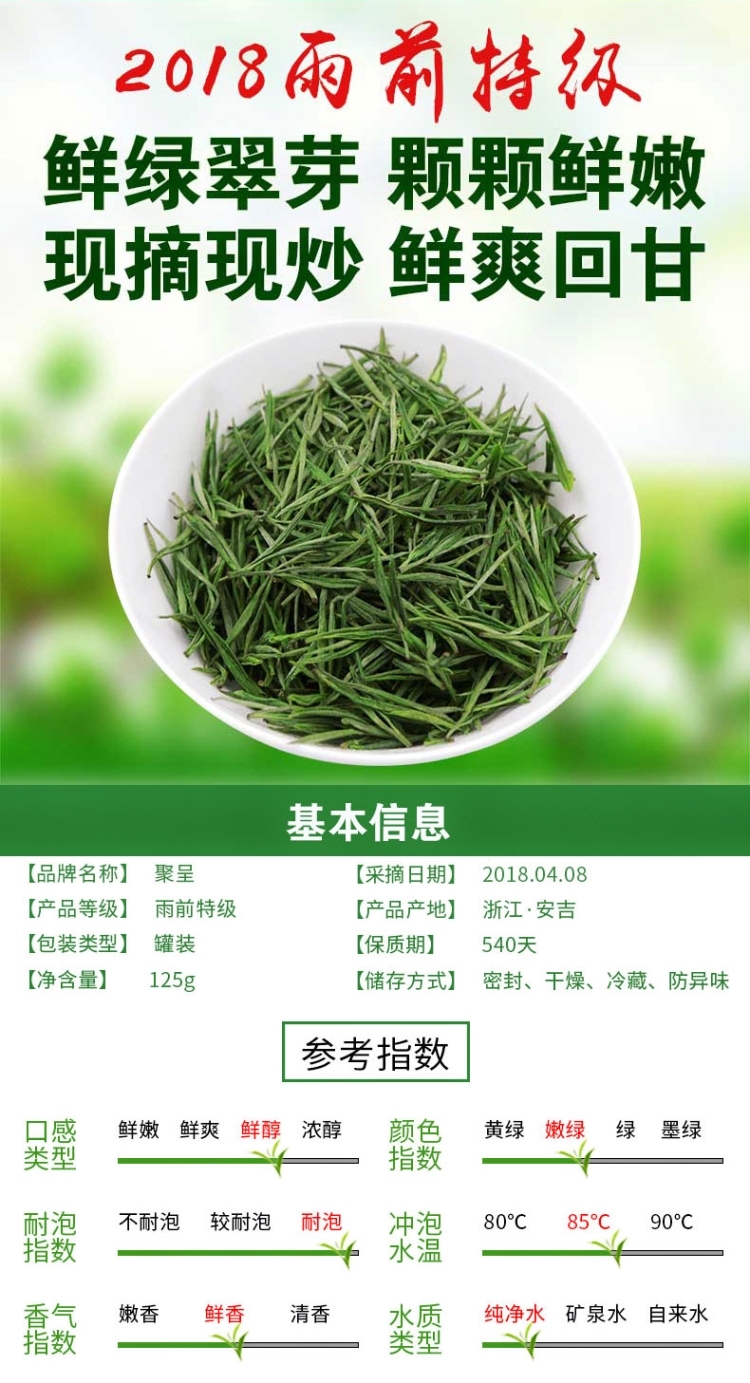 商品名称:聚呈 安吉白茶125g雨前春茶叶白茶绿茶安吉散装