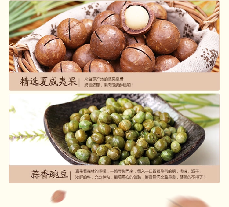商品名称:三只松鼠 夏威夷果多味花生豌豆5袋605g休闲零食组合