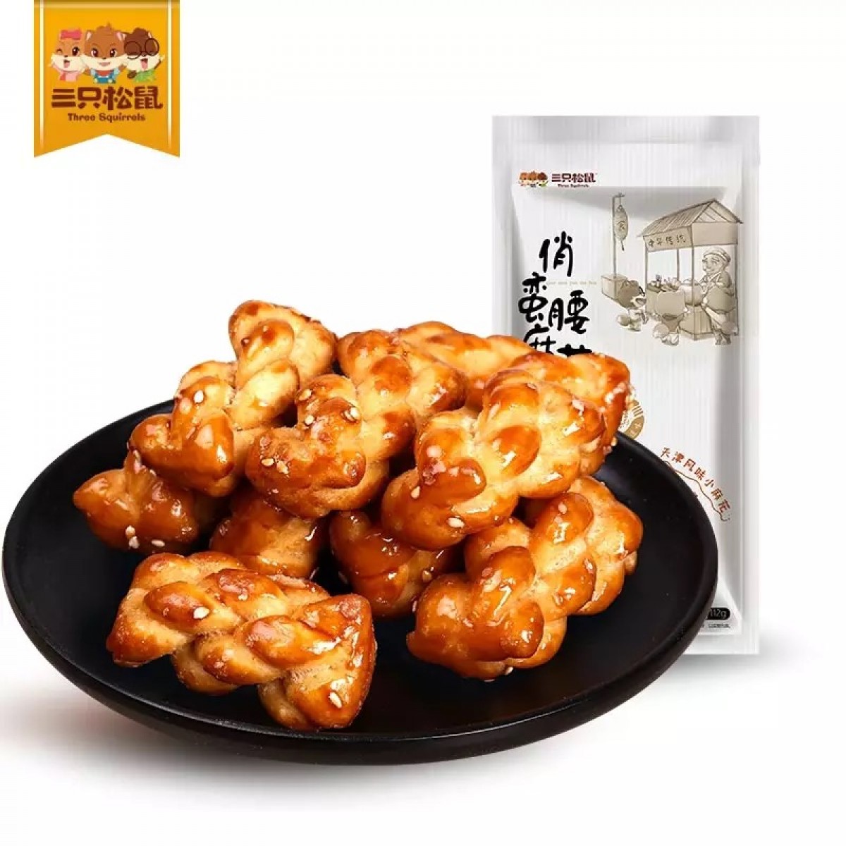 商品名称:三只松鼠 零食黑糖味俏蛮腰麻花112g天津风味特色芝麻小麻花卷