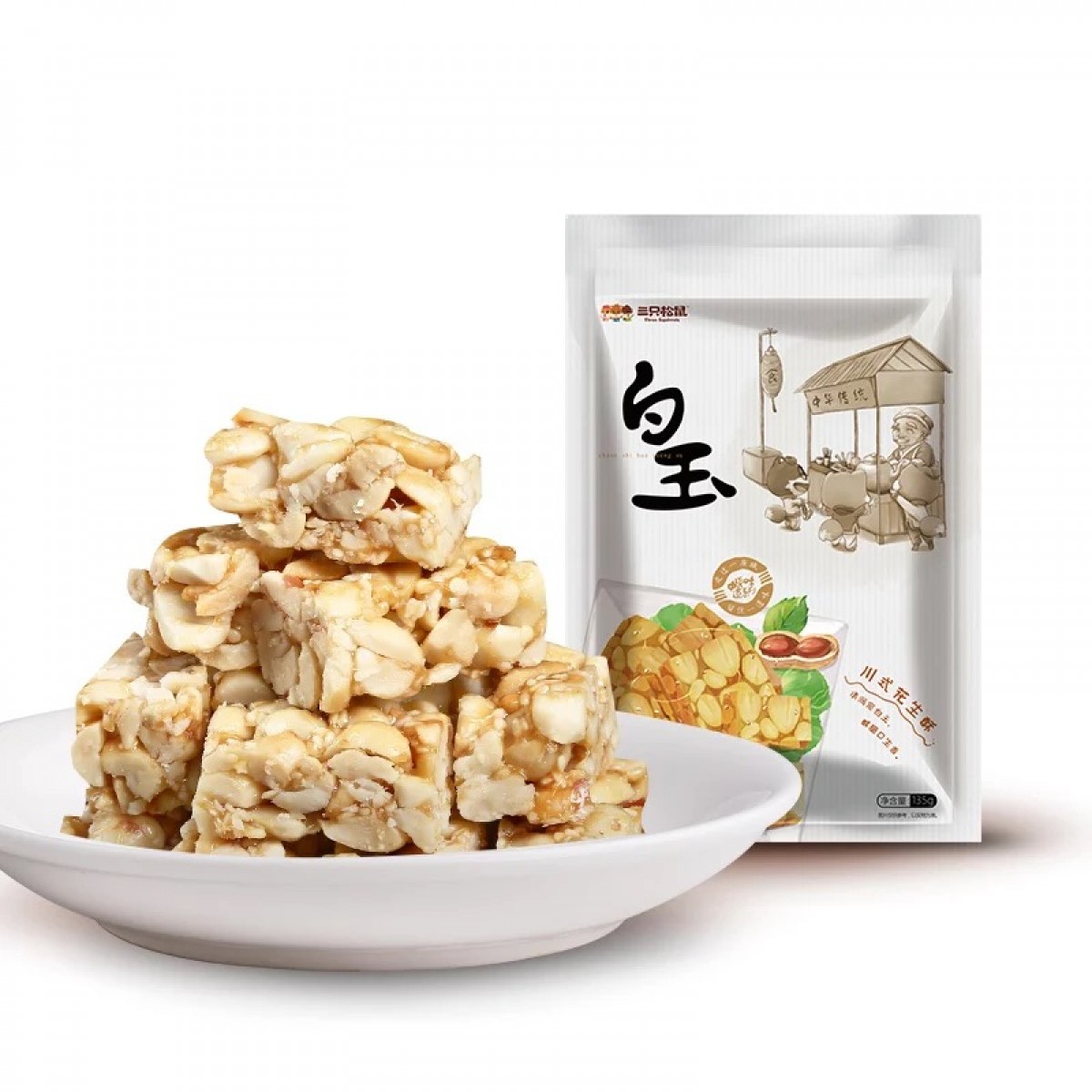 三只松鼠 白玉川式花生酥135g四川特产花生酥糖原味花生酥糕点零食