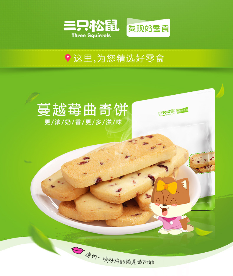 商品名称:三只松鼠 蔓越莓曲奇饼260g 小松鼠饼干零食饼干美食糕点