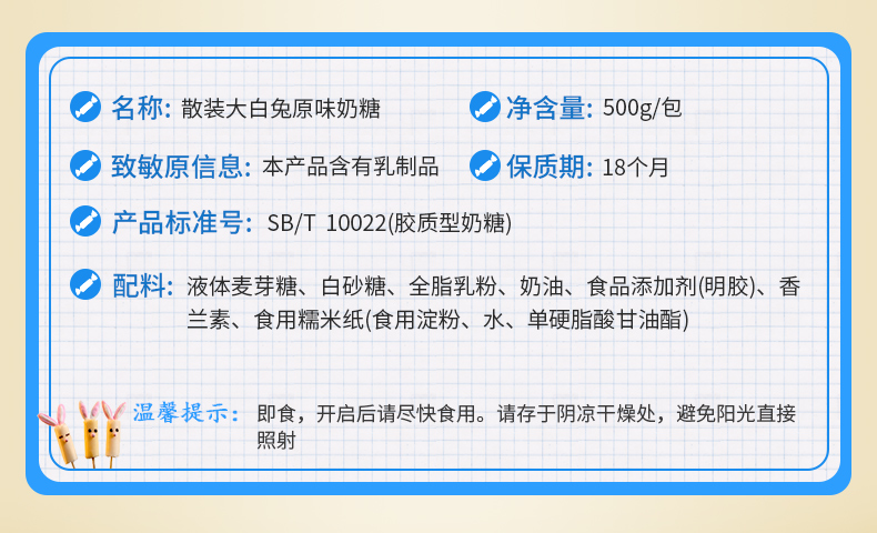 商品名称:大白兔 奶糖 500g原味散装
