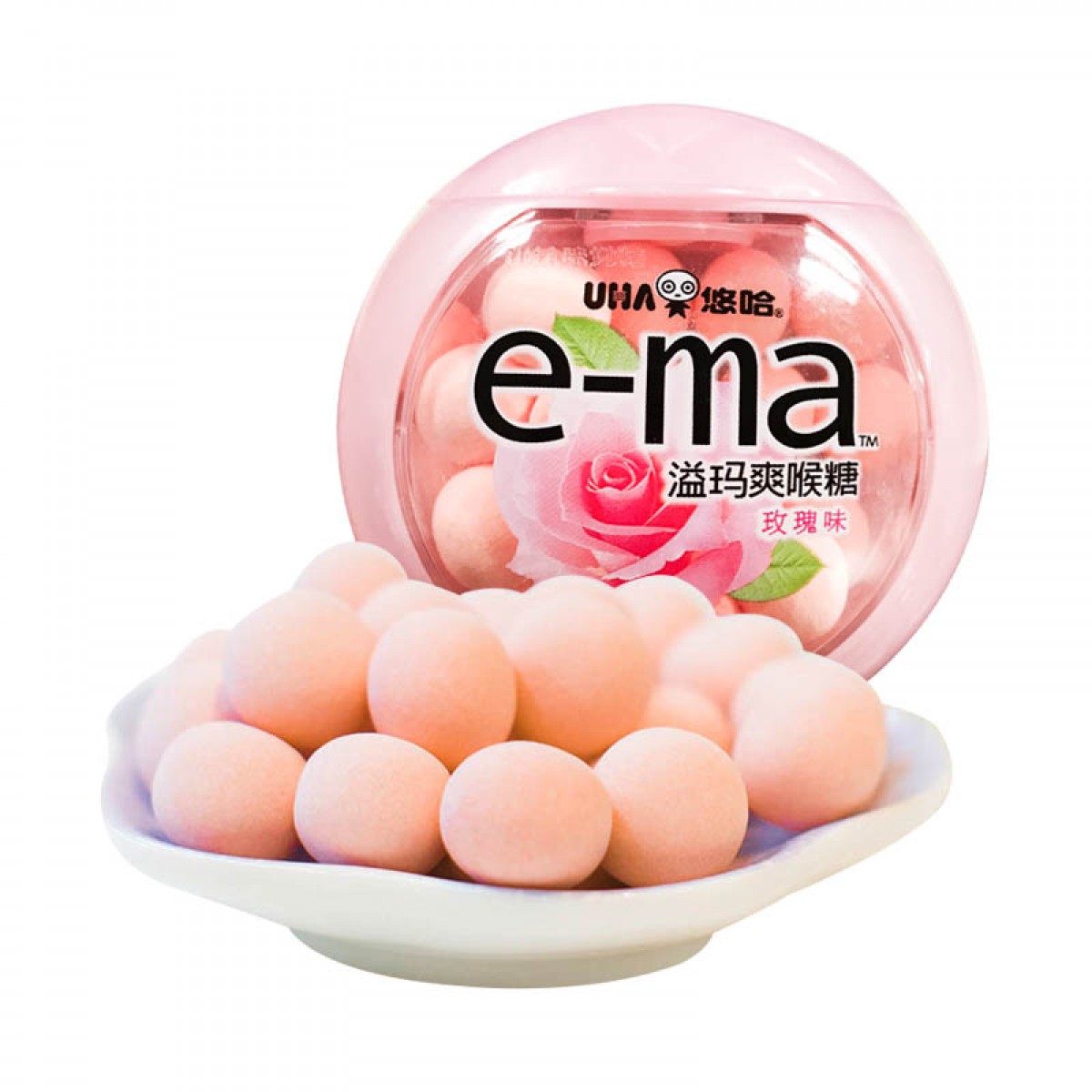 UHA/悠哈 e-ma溢玛爽喉糖玫瑰味33g日本进口清新口气润喉糖休闲零食