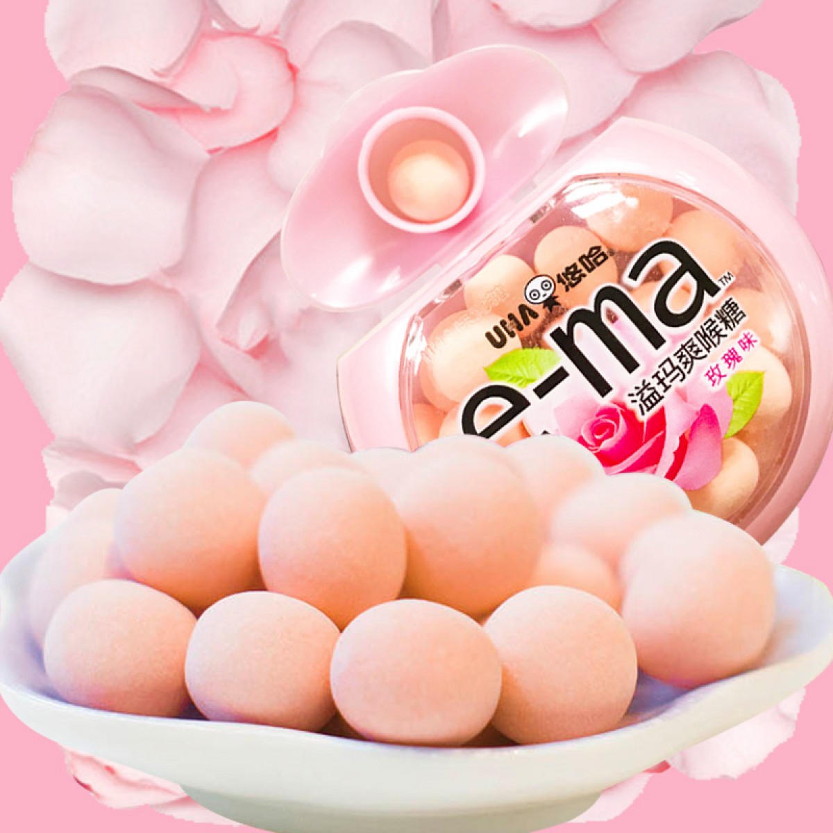 商品名称:UHA/悠哈 e-ma溢玛爽喉糖玫瑰味33g日本进口清新口气润喉糖休闲零食