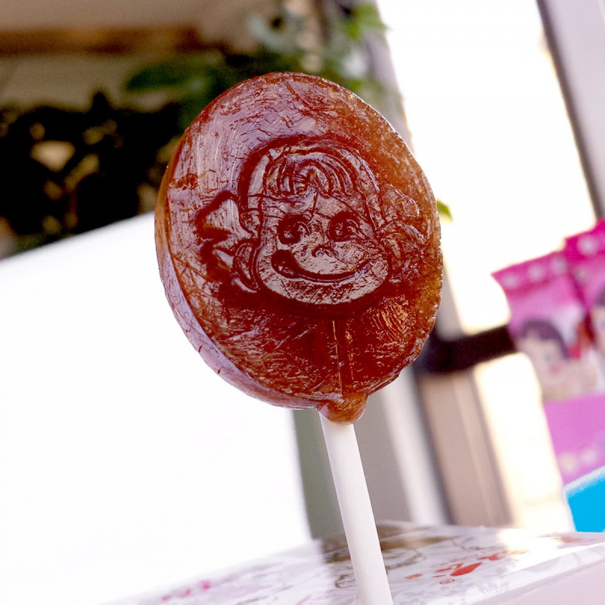 一盒28支大棒棒糖,美梅味的味道 类似于话梅味哦,酸酸甜甜的口感!