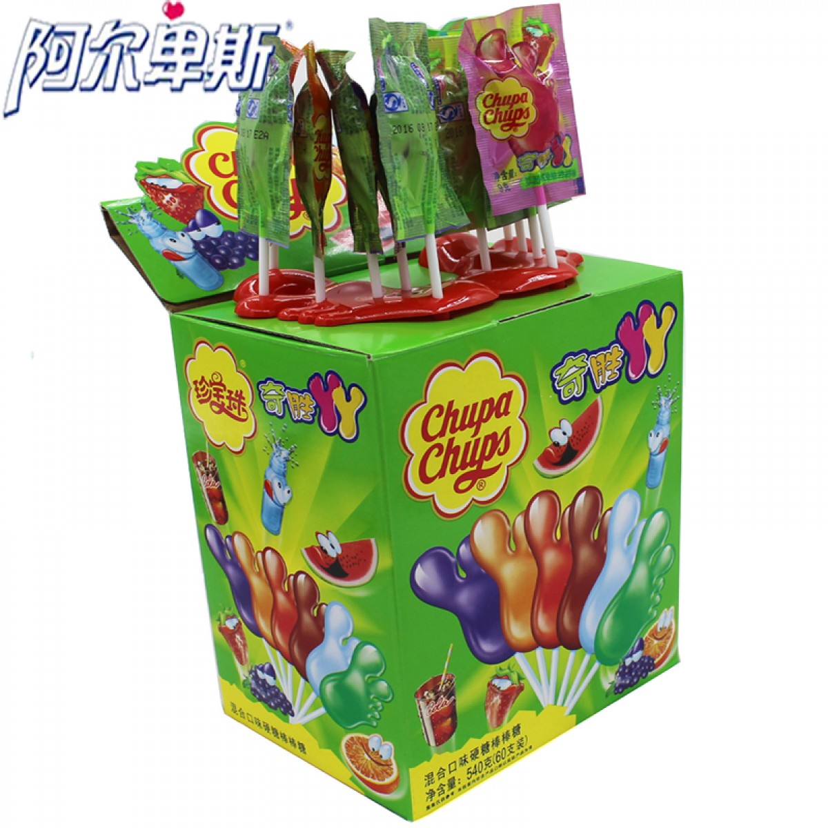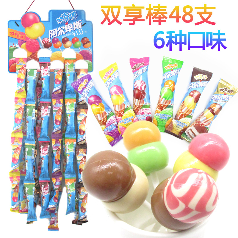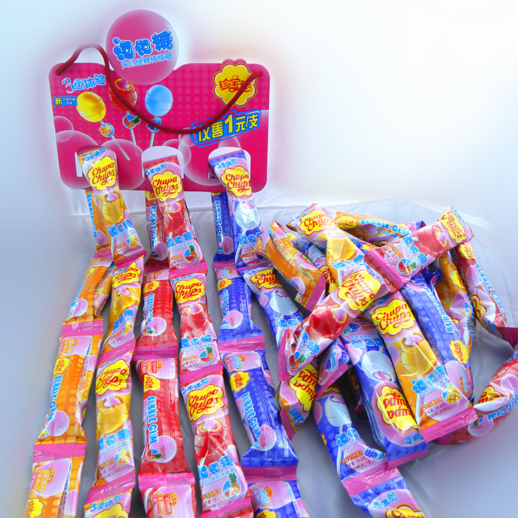 珍宝珠泡泡糖棒棒糖4种口味:波子汽水黑莓味16.8g*16支+西瓜菠萝味16.8g*16支+芒果柠檬茶味16.8g*16支,共计48支。