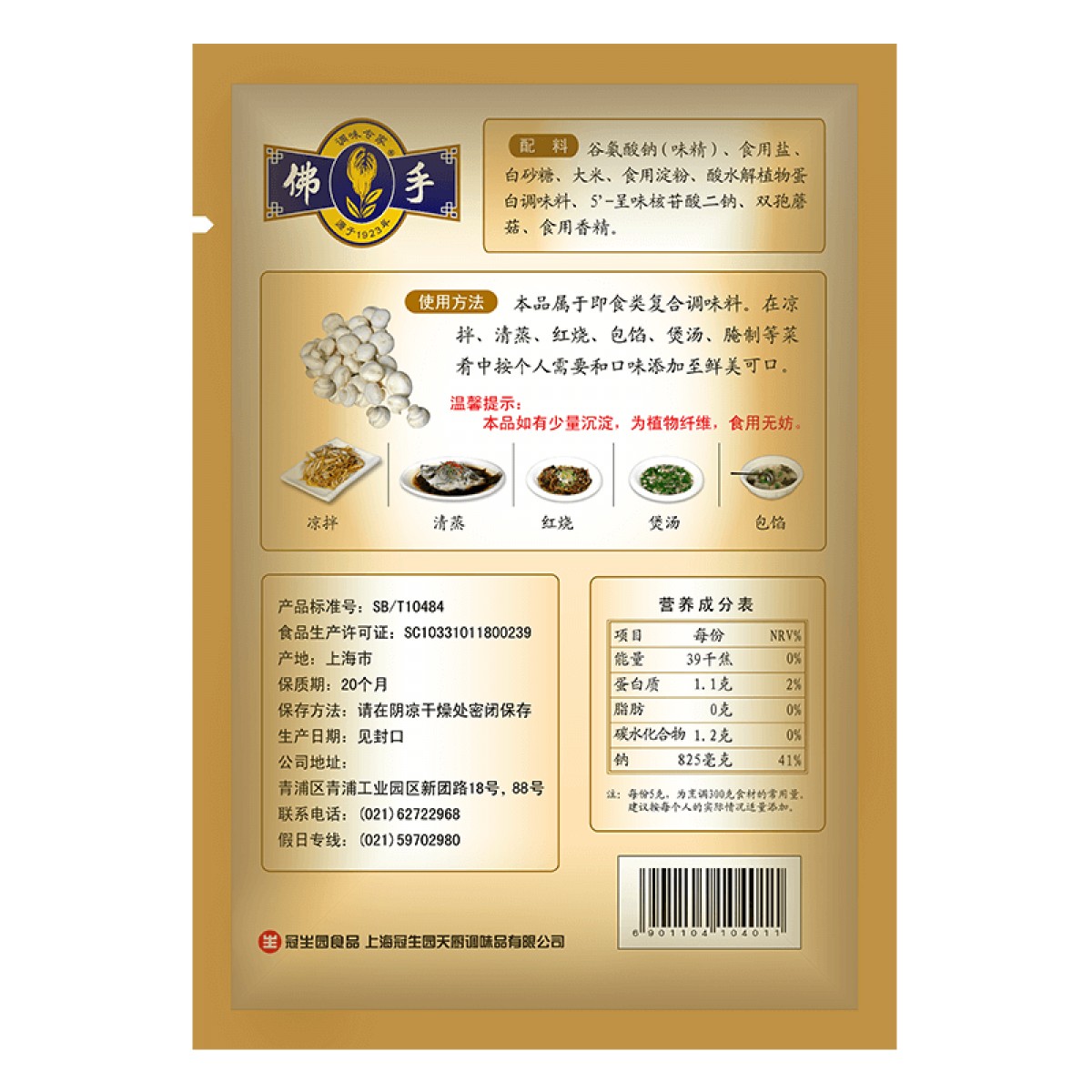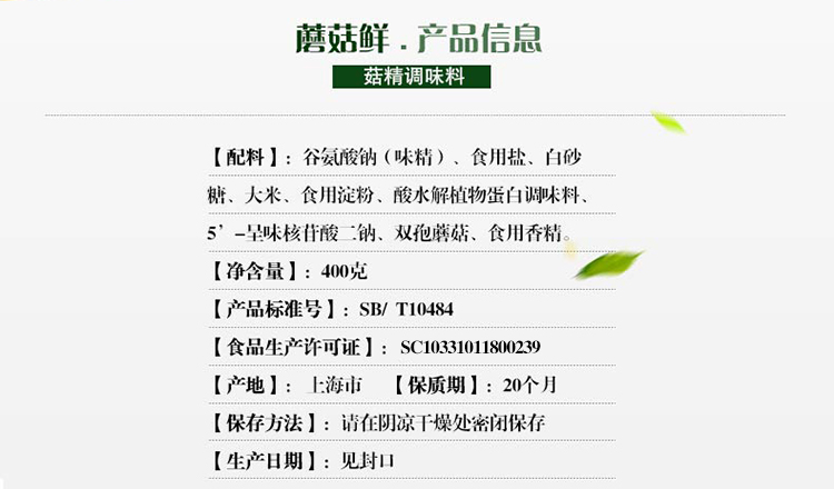 商品名称:冠生园 佛手牌 双孢蘑菇精400g袋装 替代鸡精味精调味品