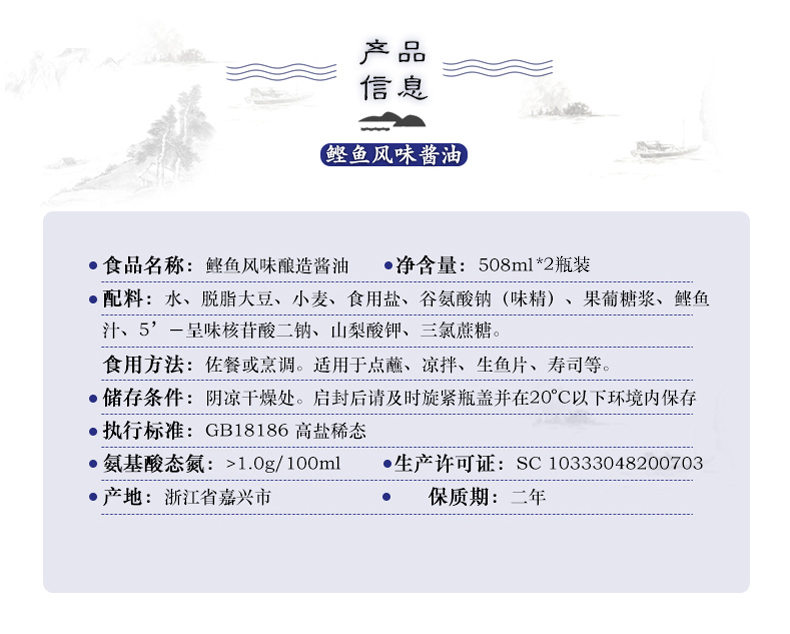 商品名称:冠生园 好伴牌 鲣鱼风味酱油 508ml*2瓶组合玻璃瓶装
