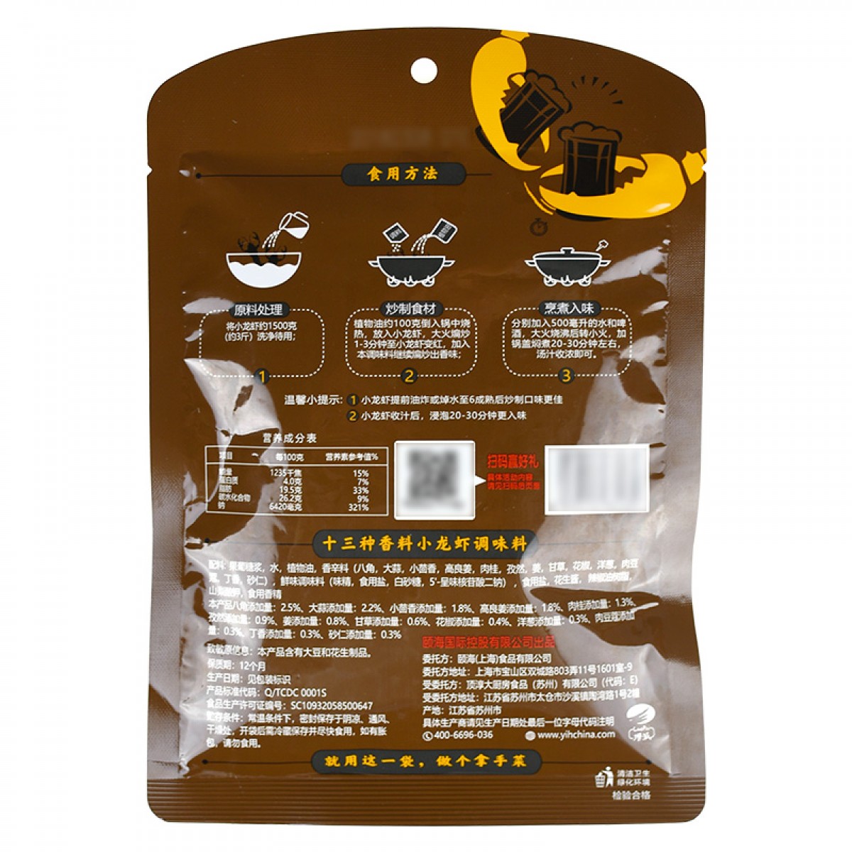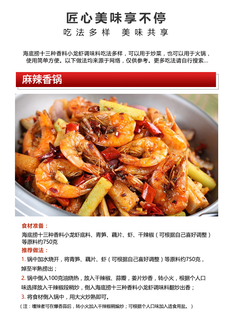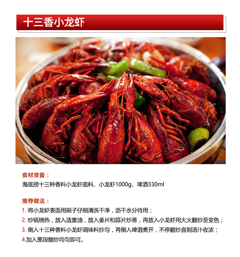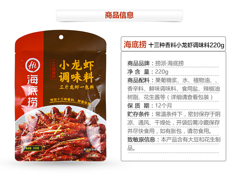 商品名称:海底捞 调味料 十三香鲜味小龙虾调味料220g 捞派龙虾花甲调味料