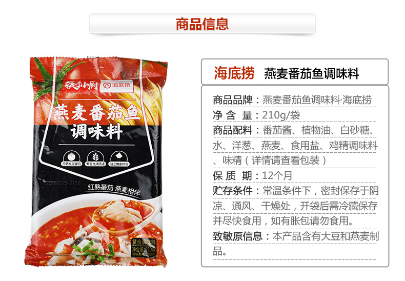 商品名称:海底捞 筷手小厨燕麦番茄鱼210G火锅底料调味料包