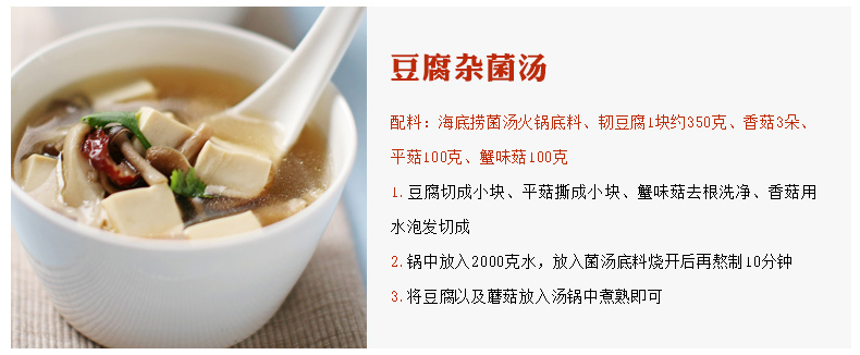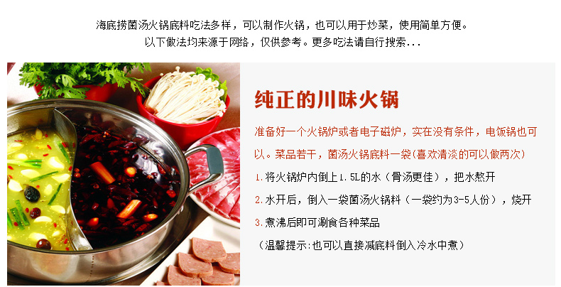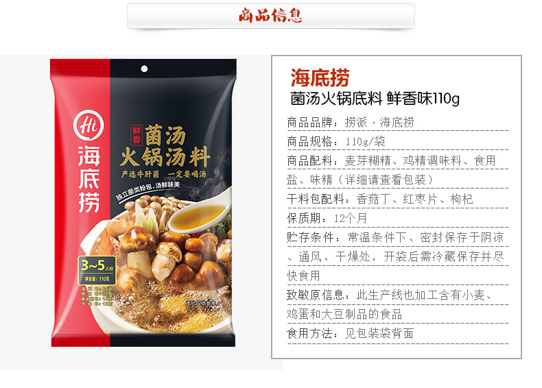 商品名称:海底捞 火锅底料菌汤火锅汤料110g 四川特产捞派火锅调味料