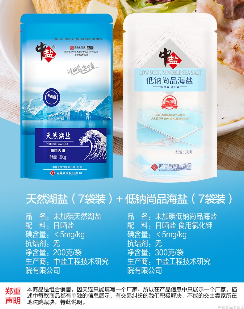 商品名称:中盐 未加碘天然湖盐×7袋+未加碘低钠尚品海盐×7袋