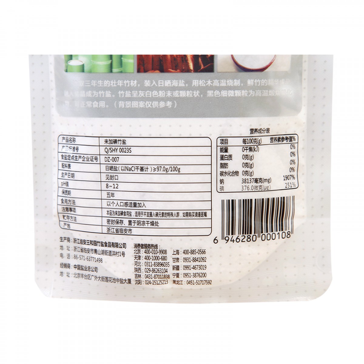 商品名称:中盐 三和园未加碘竹盐250克食用盐无碘盐精制盐