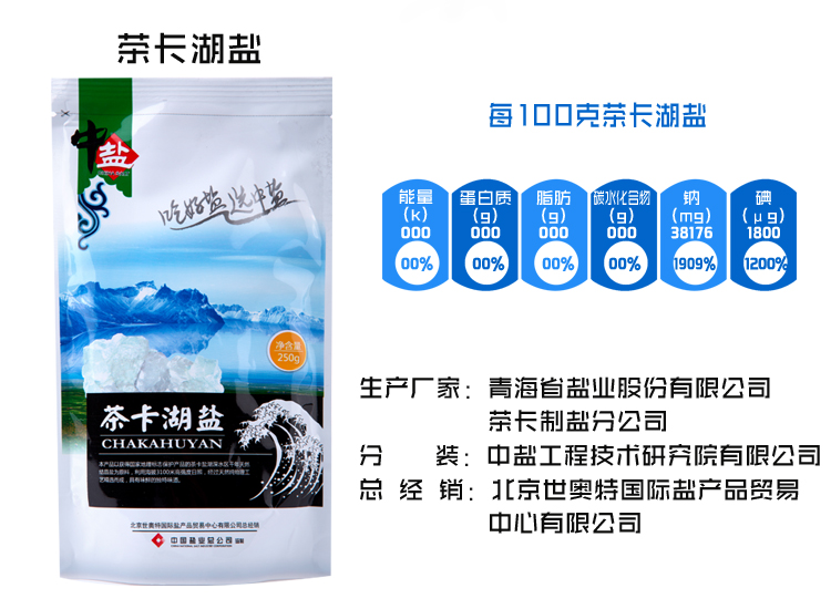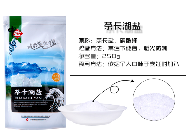 商品名称:中盐 茶卡湖盐250g加碘盐食用湖盐精制盐盐巴食盐调味品