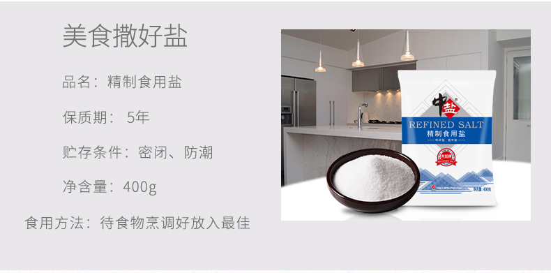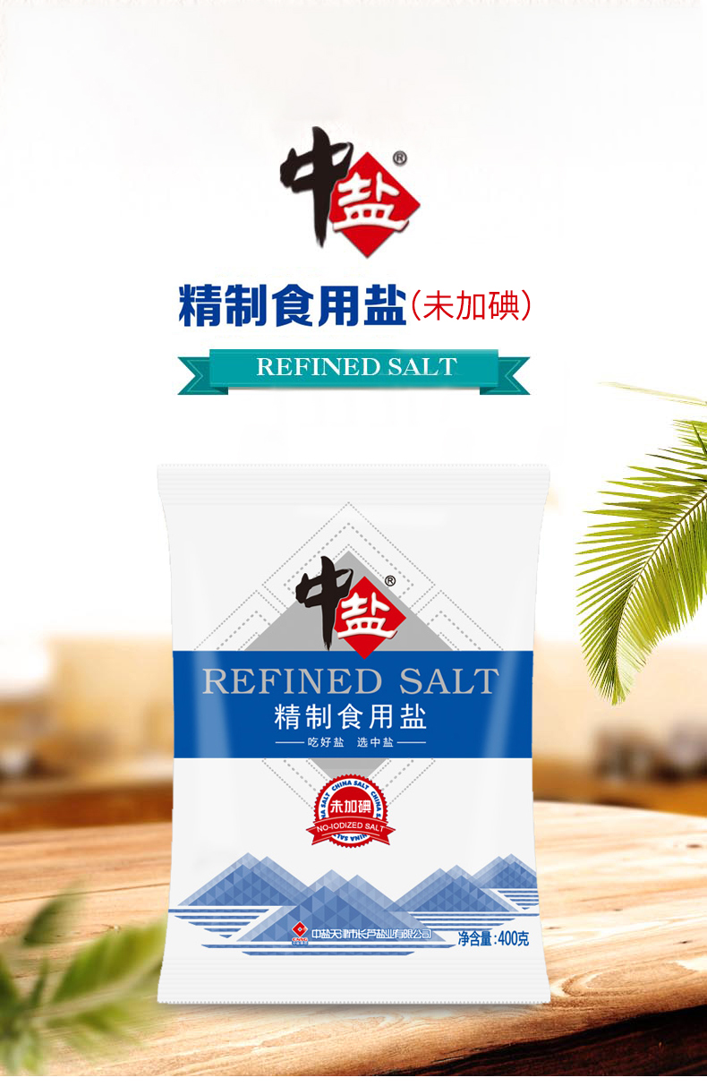 商品名称:中盐 精制食用盐400g未加碘无碘食盐不加碘小包