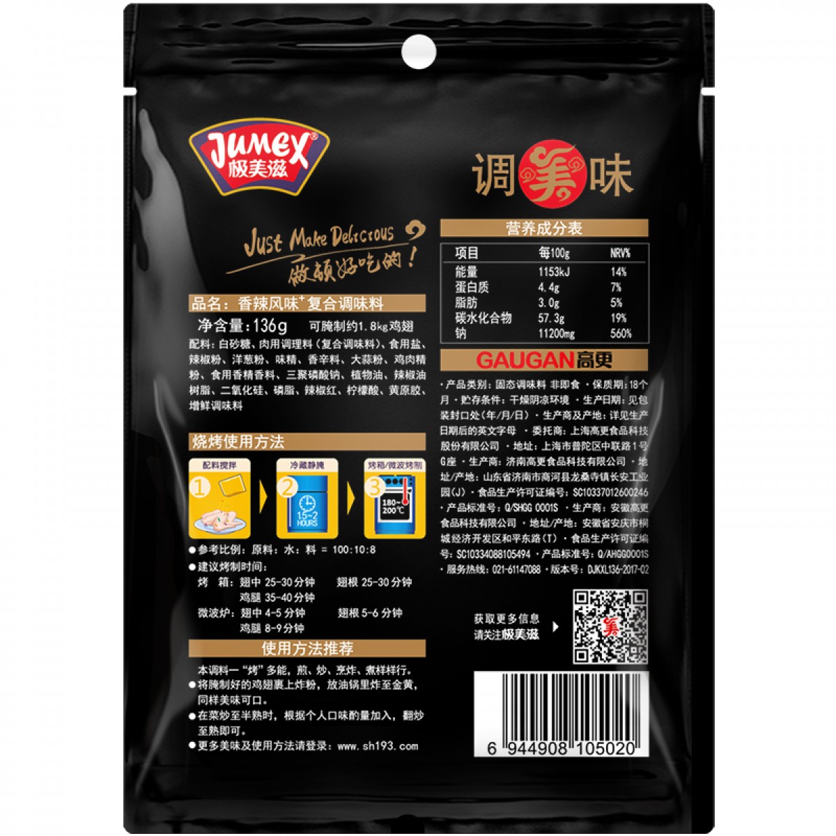 商品名称:极美滋 新奥尔良烤鸡翅腌料香辣136g KFC炸鸡烤肉料 烧烤调料粉
