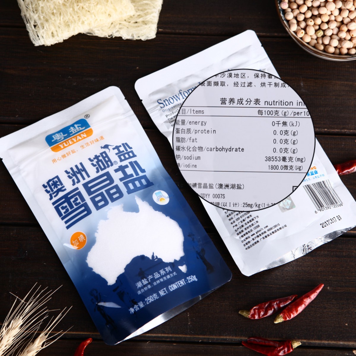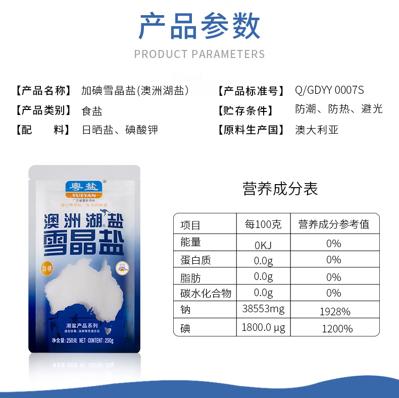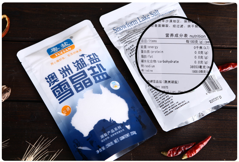 商品名称:粤盐牌 加碘250g澳洲天然湖盐雪晶盐高端进口调料盐