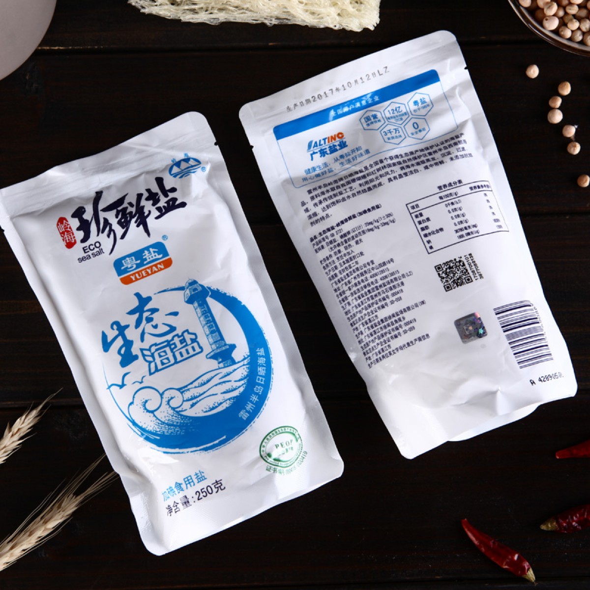商品名称:粤盐牌 250克珍鲜盐天然生态海盐加碘食用盐食盐调味