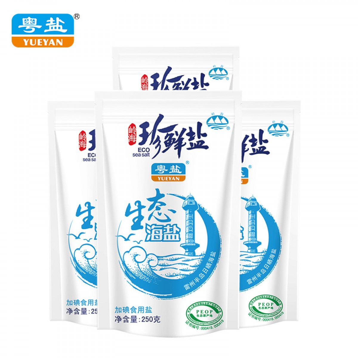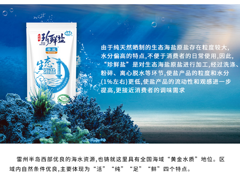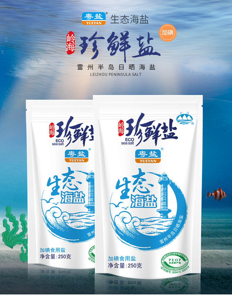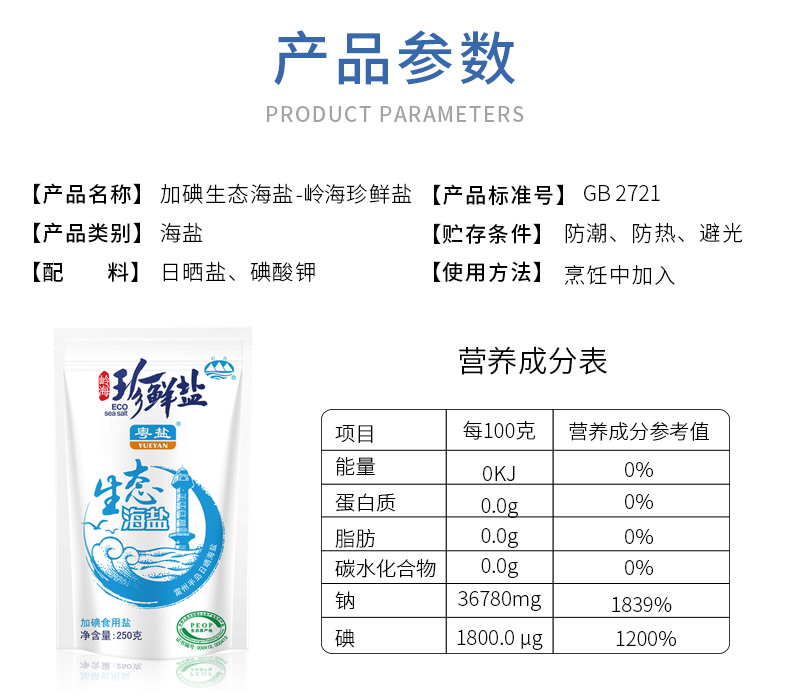 商品名称:粤盐牌 250克珍鲜盐天然生态海盐加碘精制食用盐食盐调味