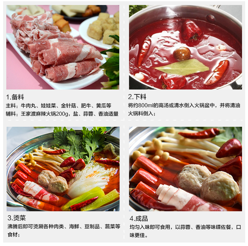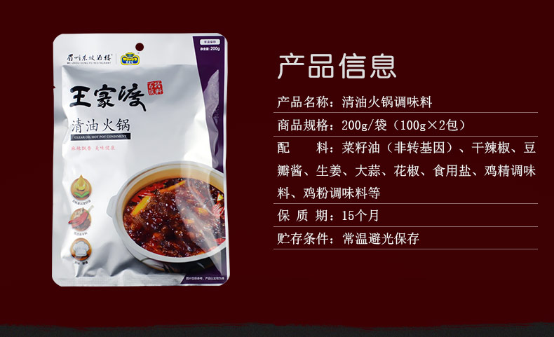 商品名称:王家渡 清油麻辣火锅底料200g 四川正宗火锅调味料蘸料炒菜料百搭