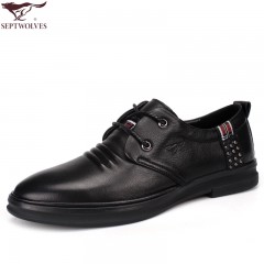 七匹狼 皮鞋新款时尚头层牛皮男士防皱设计真皮系带休闲男鞋