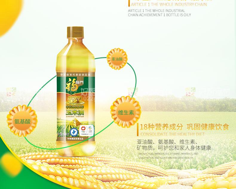 福临门 非转基因黄金产地玉米油900ml/瓶 300瓶起订
