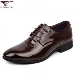 七匹狼 商务正装头层牛皮男鞋漆光皮男士真皮系带皮鞋