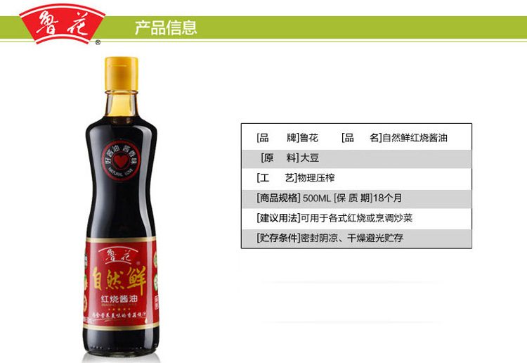 商品名称:鲁花 酱油鲁花红烧酱油500ml*3调味品家用鲜酱油调味料 老抽