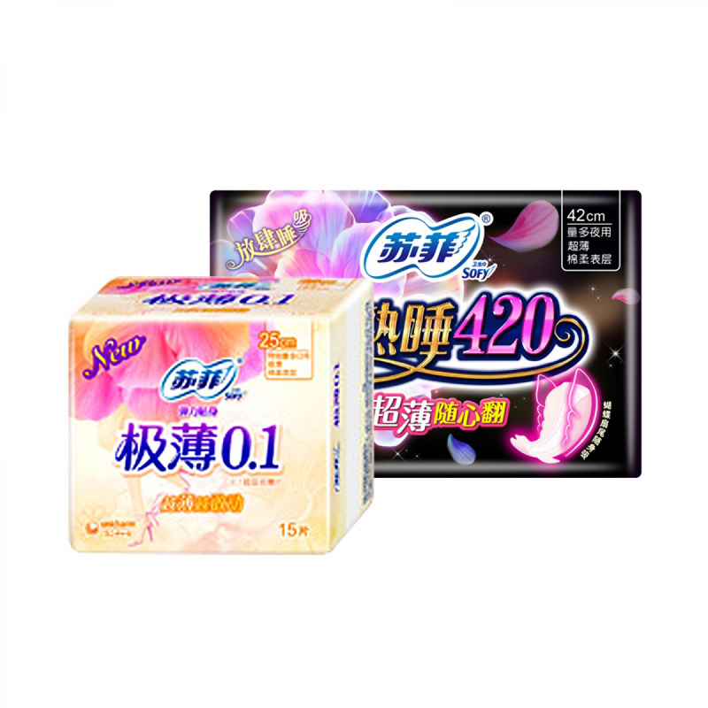 商品名称:苏菲 卫生巾极薄0.1弹力贴身超熟睡随心翻420棉柔日夜用组合混合装
