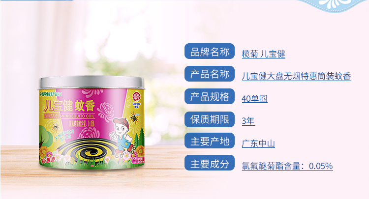 商品名称:榄菊 儿宝健大盘无烟型蚊香40单圈+蚊香座儿童蚊香桶 防蚊驱蚊盘香