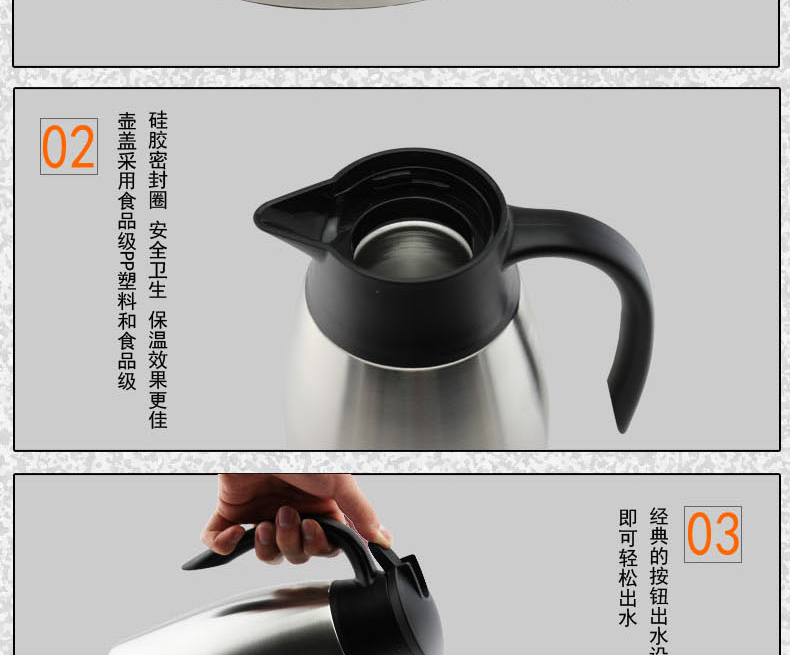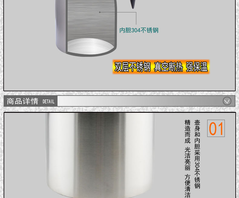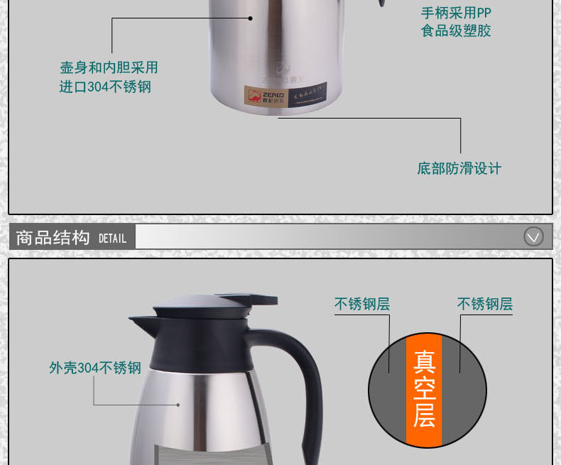 商品名称:震龙 不锈钢真空保温壶暖水壶保热保冷水壶保温瓶咖啡壶 ZL-bW-004
